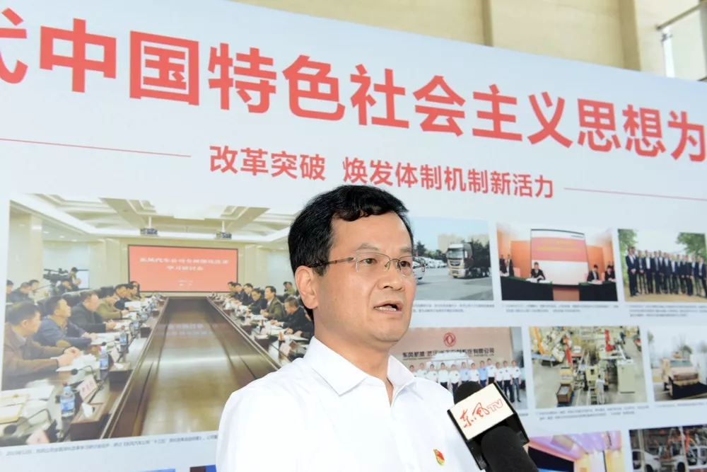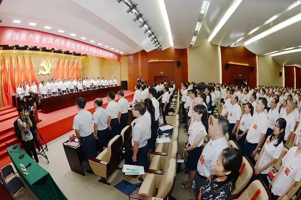 東風(fēng)公司總部學(xué)術(shù)報(bào)告廳內(nèi),氣氛隆重?zé)崃?,主席臺(tái)上方懸掛著“中國(guó)共產(chǎn)黨東風(fēng)汽車(chē)集團(tuán)有限公司第九次黨員代表大會(huì)”的會(huì)標(biāo),后幕正中是鐮刀和錘頭組成的黨徽,10面鮮艷的紅旗分列兩側(cè)。報(bào)告廳后面上方懸掛著“以習(xí)近平新時(shí)代中國(guó)特色社會(huì)主義思想為指引 加快建設(shè)卓越東風(fēng) 開(kāi)啟世界一流企業(yè)發(fā)展新征程”的橫幅。李紹燭同志主持大會(huì)。