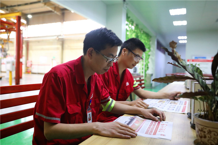 近日,東風(fēng)康明斯公司員工通過報(bào)紙、電視、網(wǎng)站、微信、宣傳櫥窗等渠道,積極學(xué)習(xí)公司第九次黨代會(huì)精神。東風(fēng)康明斯黨委書記黃乃緒要求各黨支部、各部門認(rèn)真組織學(xué)習(xí),將報(bào)告原文和會(huì)議精神解讀相結(jié)合,深刻領(lǐng)會(huì)會(huì)議的精神實(shí)質(zhì),全面把握報(bào)告提出的各項(xiàng)工作要求,將會(huì)議精神落到實(shí)處,做到知行合一。